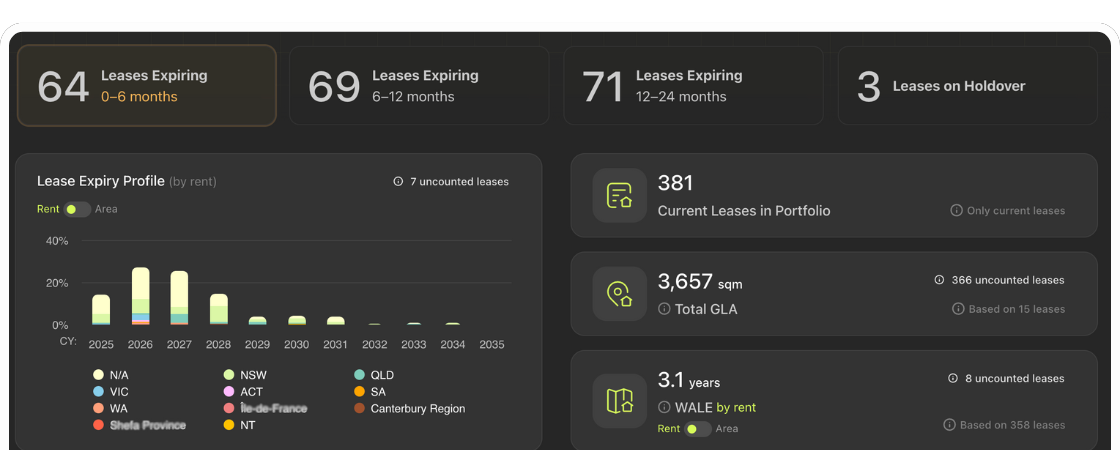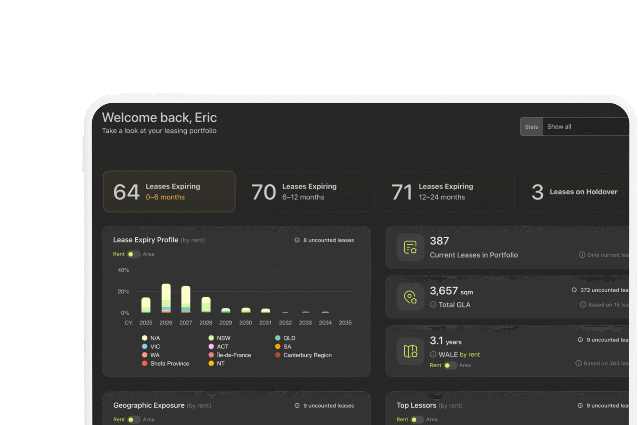 Automatically centralise and track leases for your team with powerful operations tools, live dashboards, reporting, and alerts.