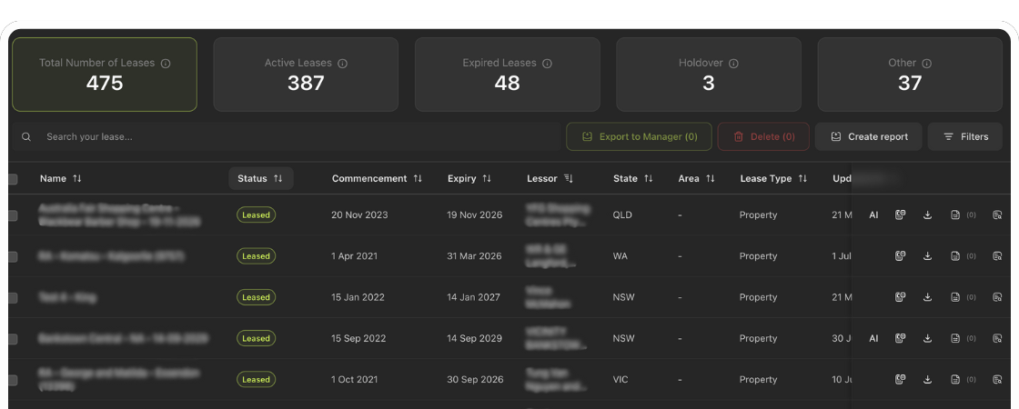 Lease Registerer is your command centre for every lease contract. It is organised, integrated, and always in sync with your team’s needs.